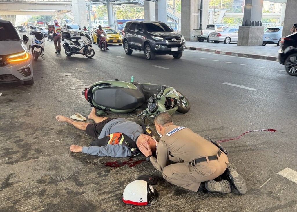 เหตุเกิดเมื่อวันที่ 14 ม.ค. 2569 เวลาประมาณ 07.50 น. บนถนนรัชดาภิเษก (ขาออก) บริเวณตรงข้ามสถานีรถไฟฟ้า MRT แยกรัชดา–ลาดพร้าว ขณะตำรวจจราจรปฏิบัติหน้าที่ตรวจการจราจร ได้รับแจ้งเหตุรถชนมีผู้บาดเจ็บสาหัส เมื่อไปถึงพบผู้บาดเจ็บมีเลือดไหลจากศีรษะจำนวนมาก