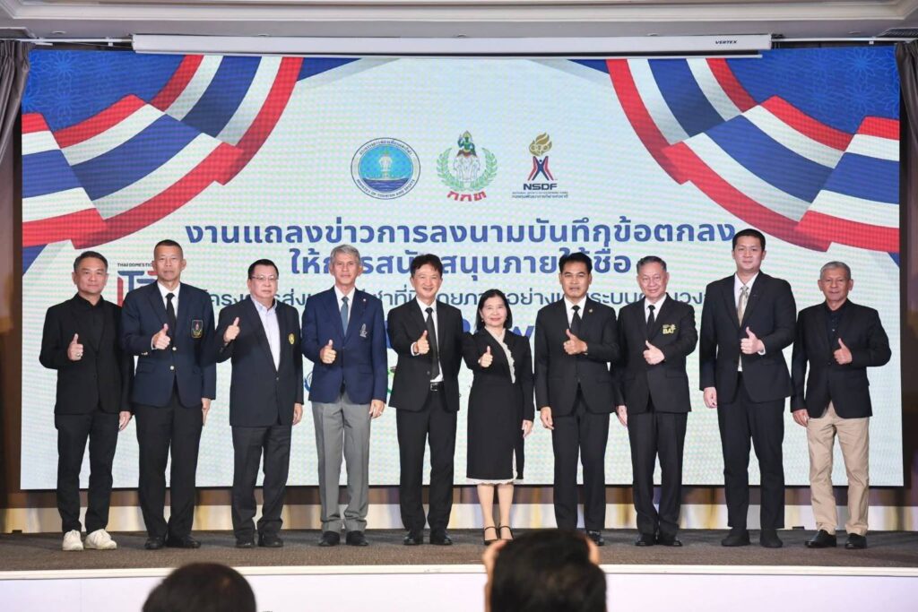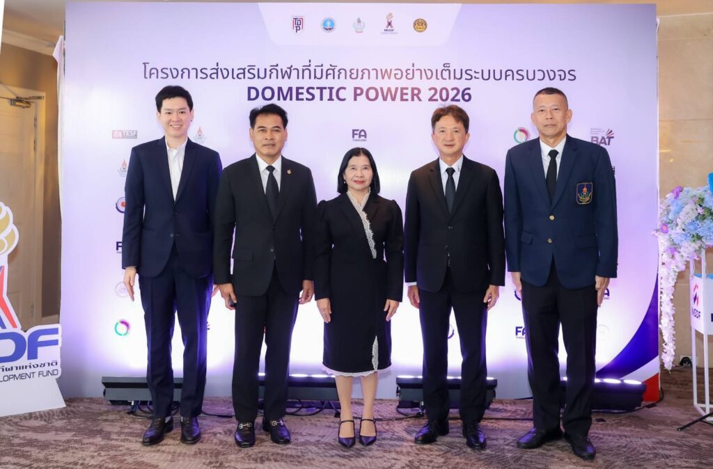 วันพฤหัสดีที่ 12 กุมภาพันธ์ 2569 เวลา 09.30 น. กองทุนพัฒนาการกีฬา แห่งชาติร่วมกับการกีฬาแห่งประ เทศไทย จัดงานแถลงข่าวการลงนามบันทึกข้อตกลงที่กองทุนฯ ให้การสนับสนุน ภายใต้ชื่อ “โครงการส่งเสริมกีฬาที่มีศักยภาพอย่างเต็มระบบครบวงจร Domestic Power 2026” โดยได้รับเกียรติจาก ดร.วนิดา พันธ์สอาด รองปลัดกระทรวงการท่องเที่ยวและกีฬา เป็นประธาน