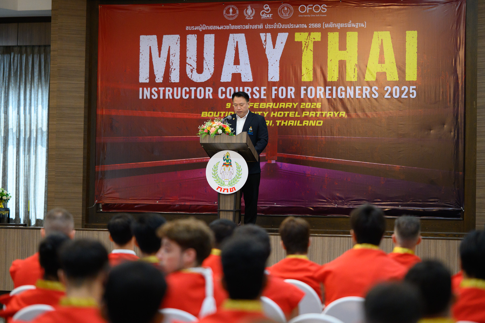 เมื่อวันที่ 13 กุมภาพันธ์ 2569 : สำนักงานคณะกรรมการกีฬามวย (สคม.) ภายใต้ การกีฬาแห่งประเทศไทย (กกท.) ประสบความสำเร็จในการจัดโครงการฝึกอบรม “Muaythai Instructor Course (Introductory Level) for Foreigners 2025” พร้อมจัดพิธีปิดและมอบประกาศนียบัตรอย่างเป็นทางการ ณ Boutique City Hotel Pattaya เมืองพัทยา จังหวัดชลบุรี