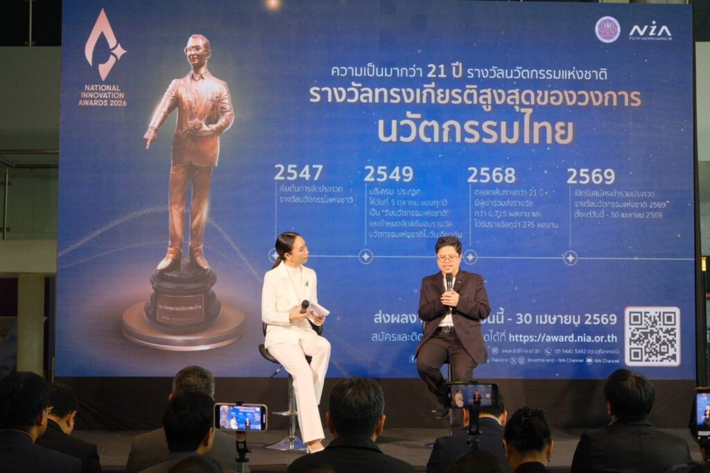 สำนักงานนวัตกรรมแห่งชาติ (องค์การมหาชน) หรือ NIA ภายใต้กระทรวงการอุดมศึกษา วิทยาศาสตร์ วิจัยและ นวัตกรรม (อว.) ประกาศเปิดรับสมัครผลงานนวัตกรรมเข้าร่วมประกวด “รางวัลนวัตกรรมแห่งชาติ ประจำปี 2569 (National Innovation Awards 2026)” รางวัลอันทรงเกียรติสูงสุดเพื่อเชิดชูผลงานนวัตกรรมที่มีความโดดเด่น และสร้างคุณูปการต่อการพัฒนาประเทศทั้งมิติเศรษฐกิจ สังคม สิ่งแวดล้อม และการพัฒนาอย่างยั่งยืน พร้อมยกระดับศักยภาพนวัตกรรมไทยสู่เวทีระดับสากล