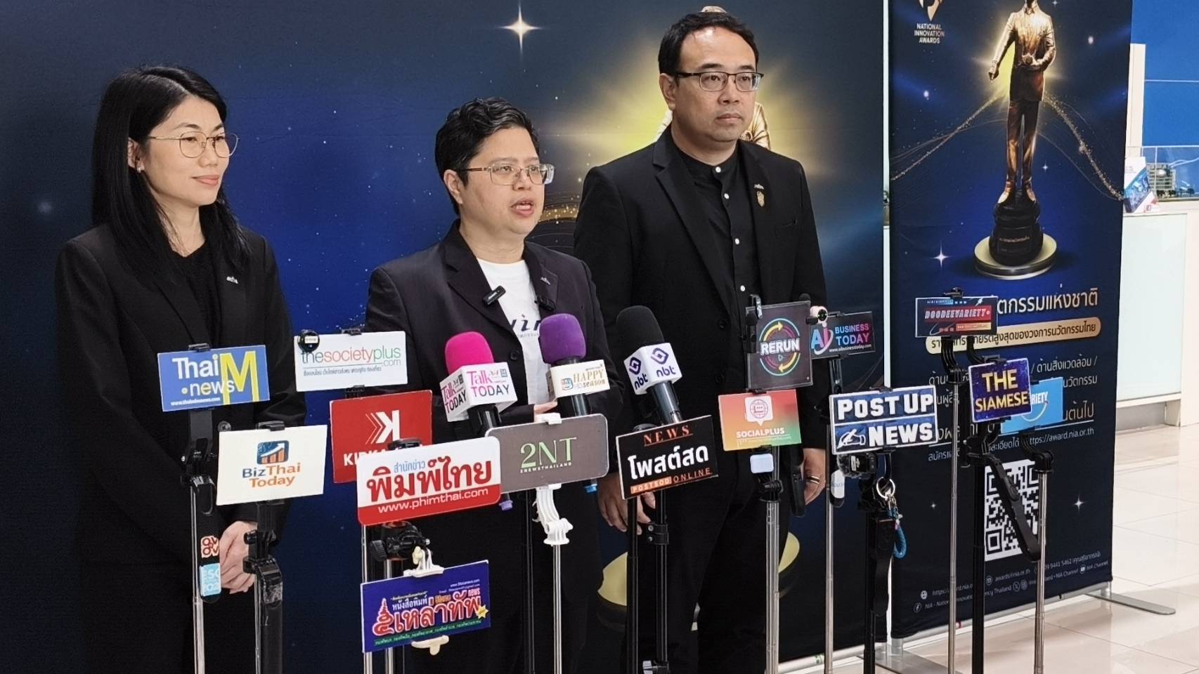 ดร.กริชผกาฯ กล่าวเพิ่มเติมว่า “สำหรับปี 2569 NIA ได้ยกระดับรูปแบบการประกวดจากเดิม 4 ด้าน เป็น 5 ด้าน โดยแยกด้านสิ่งแวดล้อมออกมาเป็นหมวดรางวัลเฉพาะ เพื่อสะท้อนความสำคัญของนวัตกรรมที่ตอบโจทย์การเปลี่ยนแปลงสภาพภูมิอากาศ การลดคาร์บอน และการพัฒนาอย่างยั่งยืนทั้งในระดับประเทศและระดับโลกทั้งนี้ การประกวดเปิดรับใน 5 ประเภทรางวัล ได้แก่ ด้านเศรษฐกิจ ด้านสังคม ด้านสิ่งแวดล้อม ด้านผู้สื่อสารนวัตกรรม และด้านองค์กรนวัตกรรม” บรรยากาศงานแถลงข่าวคึกคัก สะท้อนศักยภาพผู้ได้รับรางวัลปี 2568 บรรยากาศภายในงานเป็นไปอย่างคึกคัก โดยมีการนำเสนอผลงานจากผู้ได้รับรางวัลนวัตกรรมแห่งชาติ ประจำปี 2568 ซึ่งสะท้อนศักยภาพนวัตกรรมไทยที่สร้างผลกระทบเชิงบวกอย่างเป็นรูปธรรม