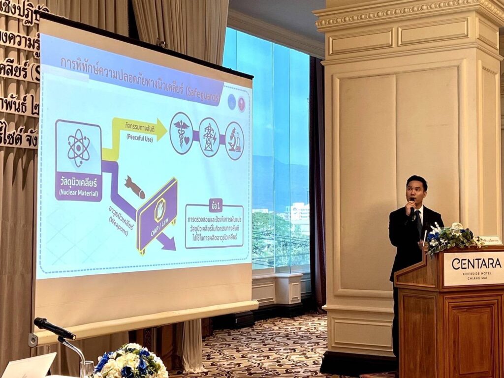 นายแพทย์รุ่งเรือง กิจผาติ อธิบดีกรมวิทยาศาสตร์บริการ และรักษาราชการแทนเลขาธิการสำนักงานปรมาณูเพื่อสันติ (ปส.) กระทรวงการอุดมศึกษา วิทยาศาสตร์ วิจัยและนวัตกรรม (อว.) ให้เกียรติเป็นประธานในพิธีเปิดการฝึกอบรมเชิงปฏิบัติการ เรื่อง “การเสริมสร้างความรู้ความเข้าใจด้านการพิทักษ์ความปลอดภัยทางนิวเคลียร์ (Safeguards) ประจำปี 2569” ในวันที่ 27 กุมภาพันธ์ 2569 ครั้งที่ 1 ณ โรงแรมเซ็นทารา ริเวอร์ไซด์ จังหวัดเชียงใหม่ โดยมีผู้บริหาร คณาจารย์ และผู้แทนจากสถาบันอุดมศึกษา ได้แก่ มหาวิทยาลัยเชียงใหม่ มหาวิทยาลัยแม่โจ้ มหาวิทยาลัยแม่ฟ้าหลวง มหาวิทยาลัยนเรศวร มหาวิทยาลัยพะเยา มหาวิทยาลัยราชภัฏเชียงใหม่ มหาวิทยาลัยเทคโนโลยีราชมงคลล้านนา และศูนย์ความเป็นเลิศด้านฟิสิกส์ เข้าร่วมการฝึกอบรม เพื่อเสริมสร้างความรู้ความเข้าใจและความร่วมมือด้านการกำกับดูแลทางนิวเคลียร์และรังสีของประเทศ