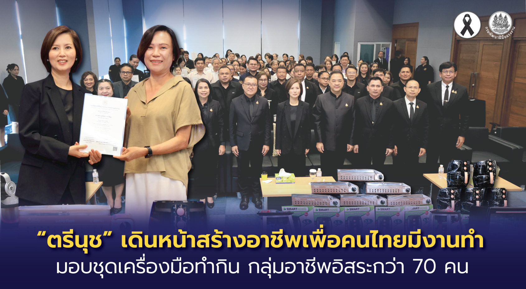 “ขอแสดงความยินดีกับผู้ผ่านการฝึกอบรมเพิ่มทักษะที่ได้รับมอบเครื่องมือทำกินไปใช้ในการประกอบอาชีพทุกคน และหวังว่า เครื่องมือทำกินที่ได้รับไปในวันนี้ จะช่วยสร้างโอกาส สร้างรายได้ที่เหมาะสมให้กับครอบครัวของทุกท่านต่อไป” นางสาวตรีนุช กล่าว