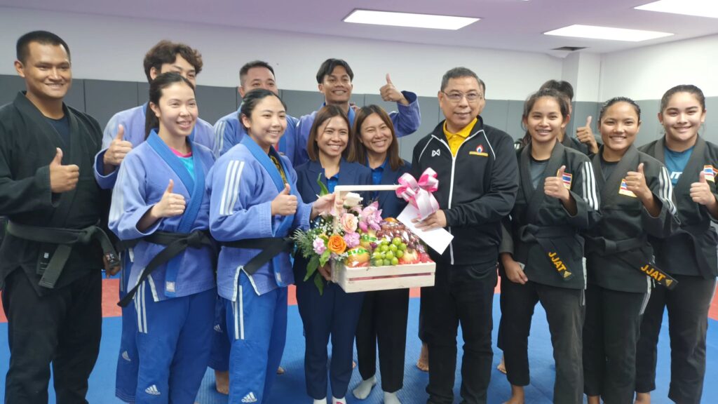 วันที่ 17 พ.ย.2568 ที่ ชั้น 3 ศูนย์วิทยาศาสตร์การกีฬา ภายใน กกท. ดร.ณัฏฐ์ ธีรณัฐสุภานนท์ ที่ปรึกษากิตติมศักดิ์คณะกรรมาธิการการท่องเที่ยวและการกีฬาวุฒิสภา,ที่ปรึกษาคณะอนุกรรมาธิการด้านการกีฬา วุฒิสภา และประธานมูลนิธิกองทุนพัฒนาการกีฬา และกรรมการบริหารมูลนิธิเดินทางมาให้กำลังใจนักกีฬาวอลเลย์บอลหญิงทีมชาติไทย ชุดสู้ศึกซีเกมส์ ครั้งที่ 33 โดยมี “โค้ชอ๊อด” เกียรติพงษ์ รัชตเกรียงไกร หัวหน้าผู้ฝึกสอนและทีมวอลเลย์ บอลหญิงทีมชาติไทยให้การต้อนรับ โดย ดร.ณัฏฐ์ ธีรณัฐสุภานนท์ มอบกระเช้าผลไม้และเงินสนับสนุนการฝึกซ้อมเพื่อเป็นขวัญและกำลังใจแก่นักกีฬาจำนวน 20,000 บาท พร้อมให้โอวาทแก่ทีมวอลเลย์บอลหญิงทีมชาติไทย ให้ประสบความสำเร็จคว้าเหรียญทองสมัยที่ 17 และเป็นแชมป์ซีเกมส์ 15 สมัยติดต่อกัน ที่สำคัญขอให้อยู่ในระเบียบวินัยและดูแลสุขภาพร่างกายให้สมบูรณ์ที่สุดกับมหกรรมกีฬาซีเกมส์ที่เหลือเวลาอีกเพียง 22 วัน จากนั้นเดินทางไปเยี่ยมชมการฝึกซ้อมของนักกีฬายูยิตสูที่สนามซ้อมของสมาคมฯชั้นล่างสนามราชมังคลากีฬาสถาน ซึ่งนักกีฬายูยิตสูทีมชาติไทยเพิ่งเสร็จสิ้นภารกิจการแข่งขันยูยิตสูชิงแชมป์โลก ที่ประเทศไทยเป็นเจ้าภาพระหว่างวันที่ 1-15 พ.ย.ที่ผ่านมาด้วยผลงานคว้า 6 เหรียญทองในประเภทประชาชน ซึ่งเป็นนักกีฬาชุดเตรียมซีเกมส์ ครั้งที่ 33 โดยมี รศ.ดร.ชาญชัย สุขสุวรรณ์ นายกสมาคมกีฬายูยิตสูแห่งประเทศไทย ผู้ฝึกสอนและนักกีฬายูยิตสูทีมชาติไทยให้การต้อนรับ ในโอกาสนี้ ดร.ณัฏฐ์ ธีรณัฐสุภานนท์ มอบกระเช้าผลไม้และเงินจำนวน 20,000 บาทสนับสนุนการฝึกซ้อม เพื่อเป็นขวัญและกำลังใจแก่นักกีฬายูยิตสูทีมชาติไทย ซึ่งมั่นใจคว้า 9-10 เหรียญทองจากมหกรรมกีฬาซีเกมส์ พร้อมอวยพรให้นักกีฬายูยิตสูทีมชาติไทย ประสบความสำเร็จคว้าเหรียญทองได้ตามเป้าหมายที่ตั้งไว้ จากนั้น ดร.ณัฏฐ์ ธีรณัฐสุภานนท์ พร้อมคณะได้ไปเยี่ยมชมการฝึกซ้อมของนักกีฬาคาราเต้ทีมชาติไทย โดยมี พลเอกสุรชาติ จิตต์แจ้ง นายกสมาคมกีฬาคาราเต้แห่งประเทศไทย คณะผู้ฝึกสอนและนักกีฬาคาราเต้ทีมชาติไทยให้การต้อนรับ โดย ดร.ณัฏฐ์ ธีรณัฐสุภานนท์ ได้มอบกระเช้าผลไม้และเงิน 20,000 บาทสนับสนุนการฝึกซ้อมของนักกีฬาคาราเต้ทีมชาติไทย เพื่อเป็นขวัญและกำลังใจให้กับนักกีฬาคาราเต้ทีมชาติไทย ทำให้นักกีฬาคาราเต้รู้สึกอบอุ่นในกำลังใจที่มอบให้ในวันนี้ ดร.ณัฏฐ์ ธีรณัฐสุภานนท์ ยังกล่าวชื่นชมน้องๆนักกีฬาคาราเต้ทีมชาติไทย กับความเสียสละ ความมุ่งมั่นในการฝึกซ้อมเป็นตัวแทนประเทศไทยในการแข่งขันกีฬาซีเกมส์ ครั้ง