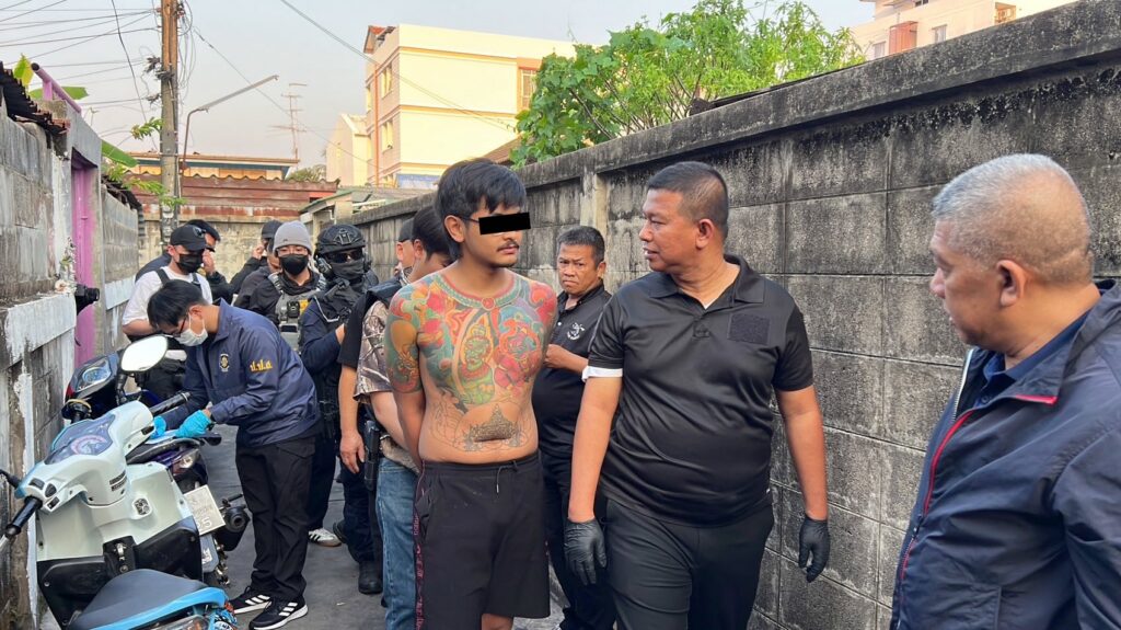 “แผนปฏิบัติการ ทลายซุ้มยาเสพติดหลังวัดรวก“ นำหมายค้นศาลเข้าตรวจค้น 3 จุด จับกุมตัวผู้ต้องหาได้ 6 ราย ดังนี้ 1.นายอำนาจ หรือบอส อายุ 22 ปี ถูกจับในข้อหา “มีวัตถุออกฤทธิ์ในประเภท 2 (เคตามีน) ไว้ในครอบครองโดยไม่ได้รับอนุญาตและปลอมเงินตรา ธนบัตรปลอม”,2.นายบารมี หรือเบีย อายุ 19 ปี ถูกจับในข้อหา “มีวัตถุออกฤทธิ์ในประเภท 2 (เคตามีน) ไว้ในครอบครองโดยไม่ได้รับอนุญาต”,3.นางสาวสุชัญญา หรือเก๋ อายุ 47 ปี ถูกจับในข้อหา “มีไว้ในความครอบครองซึ่งยาเสพติดให้โทษประเภท 1 (เมทแอมเฟตามีน) โดยฝ่าฝืนตามกฎหมายและเสพยาเสพติดให้โทษประเภท 1 (เมทแอมเฟตามีน) โดยผิดกฎหมาย”,4.นายสมชาย อายุ 57 ปี ผู้ต้องหาตามหมายจับของศาลอาญาธนบุรี ที่ 246/2569 ลงวันที่ 2 มีนาคม 2569 ข้อหา “จำหน่ายยาเสพติดให้โทษประเภท 1 (ยาบ้าและไอซ์) โดยกระทำเพื่อการค้า โดยผิดกฎหมายและสมคบโดยการตกลงกันตั้งแต่สองคนขึ้นไป เพื่อกระทำความผิดร้ายแรงเกี่ยวกับยาเสพติด และได้มีการกระทำความผิดร้ายแรงเกี่ยวกับยาเสพติดเพราะเหตุที่ได้มีการสมคบกัน”,5.นายอนุสรณ์ ผู้ต้องหาตามหมายจับศาลอาญา ที่ 127/2569 ข้อหา “สมคบกันกระทำความผิดเกี่ยวกับยาเสพติด และได้มีการกระทำความผิดเกี่ยวกับยาเสพติดเพราะเหตุที่ได้มีการสมคบกัน (จำหน่ายยาเสพติดให้โทษประเภท 1 (ไอซ์) โดยกระทำเพื่อการค้าโดยไม่ได้รับอนุญาต” และแจ้งข้อหาเพิ่มเติมว่า “มียาเสพติดให้โทษประเภท 1 (ยาบ้า) ไว้ในครอบครองโดยผิดกฎหมาย” และ 6.นางสาวชาลิณี อ่อนนุ่ม ถูกจับกุมข้อหา “มียาเสพติดให้โทษประเภท 1 (ไอซ์) ไว้ในครอบครองโดยผิดกฎหมาย”