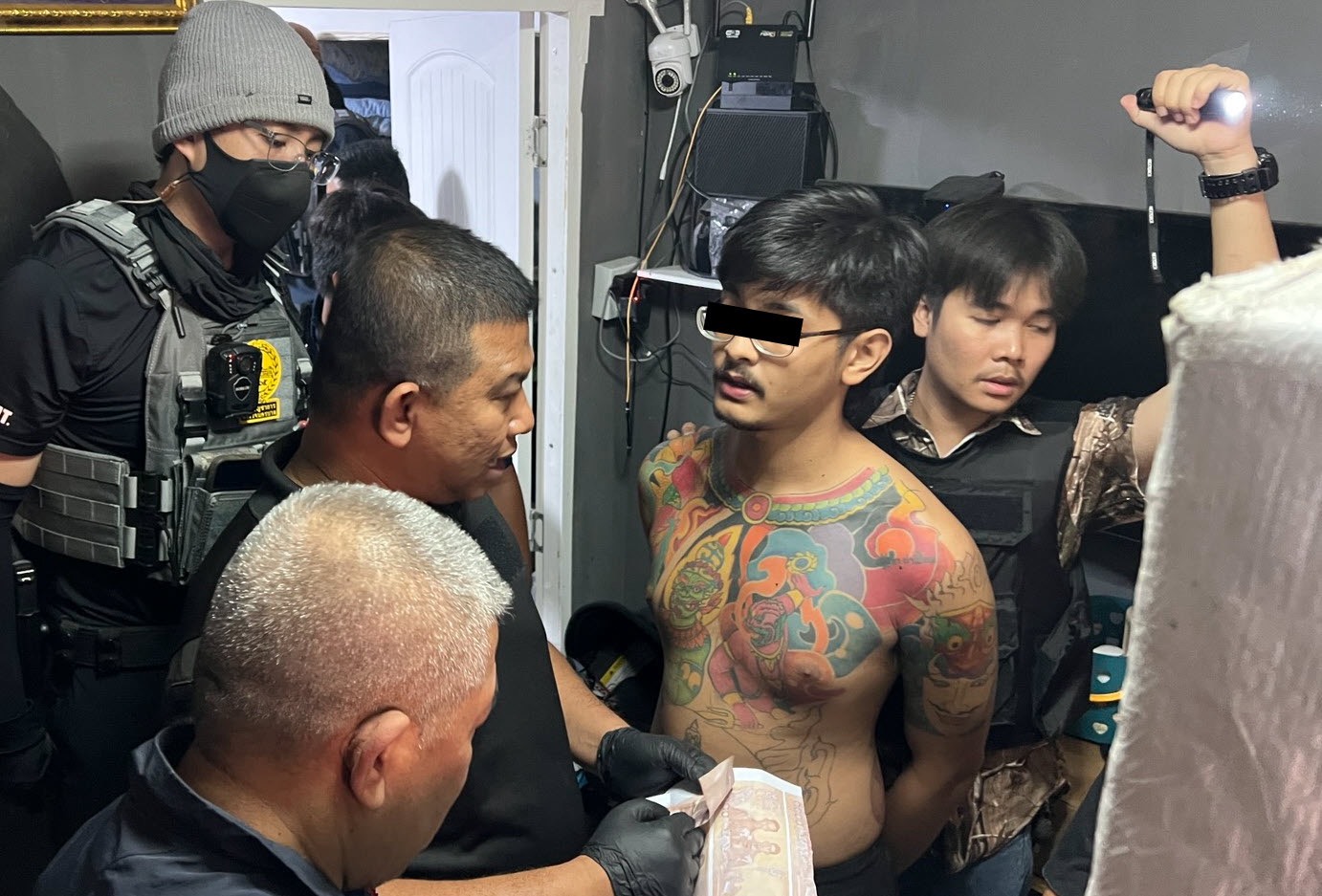 “จัดชุดใหญ่ทลายหัวจ่ายย่านฝั่งธน” บช.น.และปปส. สนธิกำลังบุกค้น 3 จุด แพร่ยานรก “ทลายซุ้มโจรฝั่นธนหลังวัดรวก” รวบผู้ต้องหา 6 ราย ไม่เพียงค้ายา แต่แอบผลิตเงินปลอม พร้อมโชว์ติดอาวุธสงครามครบมือ เสมือนจะไปทำสงครามรองจ๋อเตือนชาวฝั่งธน รีบตรวจสอบแบงค์พันในกระเป๋าด่วน