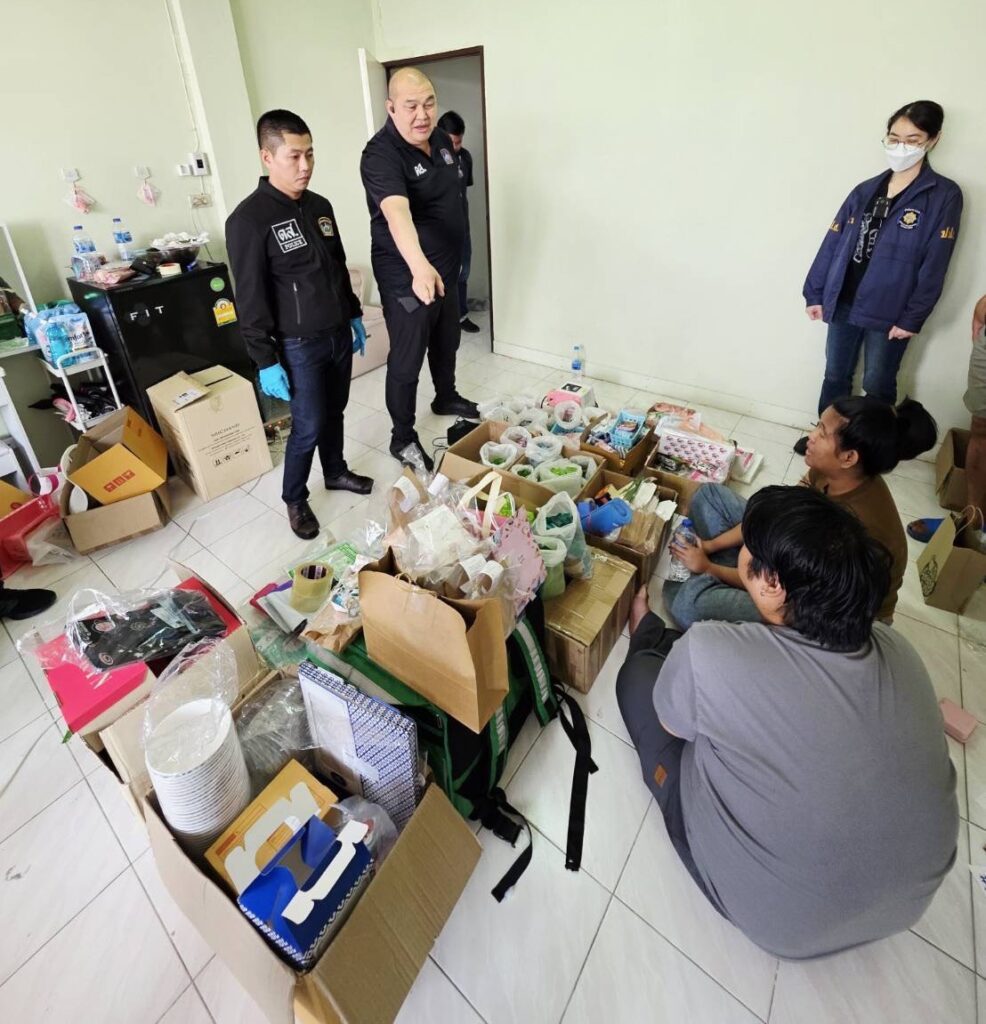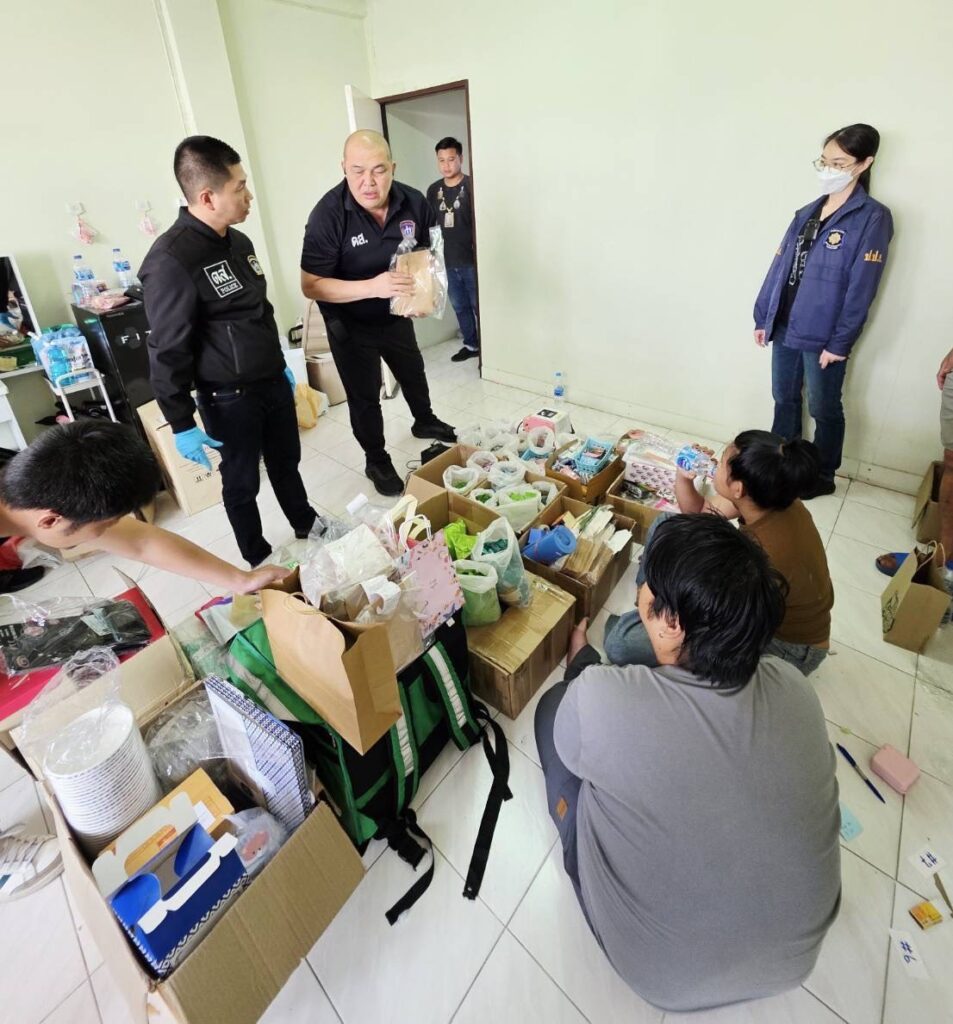 นำโดย พ.ต.ต.ยศชนินทร์ ประเสริฐโสภา พร้อมกำลังตรึงพื้นที่ก่อนพุ่งเข้าตรวจค้นบ้านเลขที่ 134/191 หมู่ 5 แขวงท่าแร้ง เขตบางเขน พบ 2 ผู้ต้องหา—นายศุภณัฐ หรือนายฟิว อายุ 29 ปี และ น.ส.ศิริประภา หรือเนย อายุ 24 ปี—กำลังแพ็กสินค้าอยู่หน้าบ้าน ถูกควบคุมตัวทันที